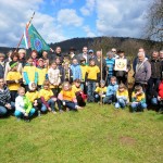 Častni občan Občine Kozje Dušan Andrej Kocman in županja Milenca Krajnc s 5. razredom Osnovne šole Kozje