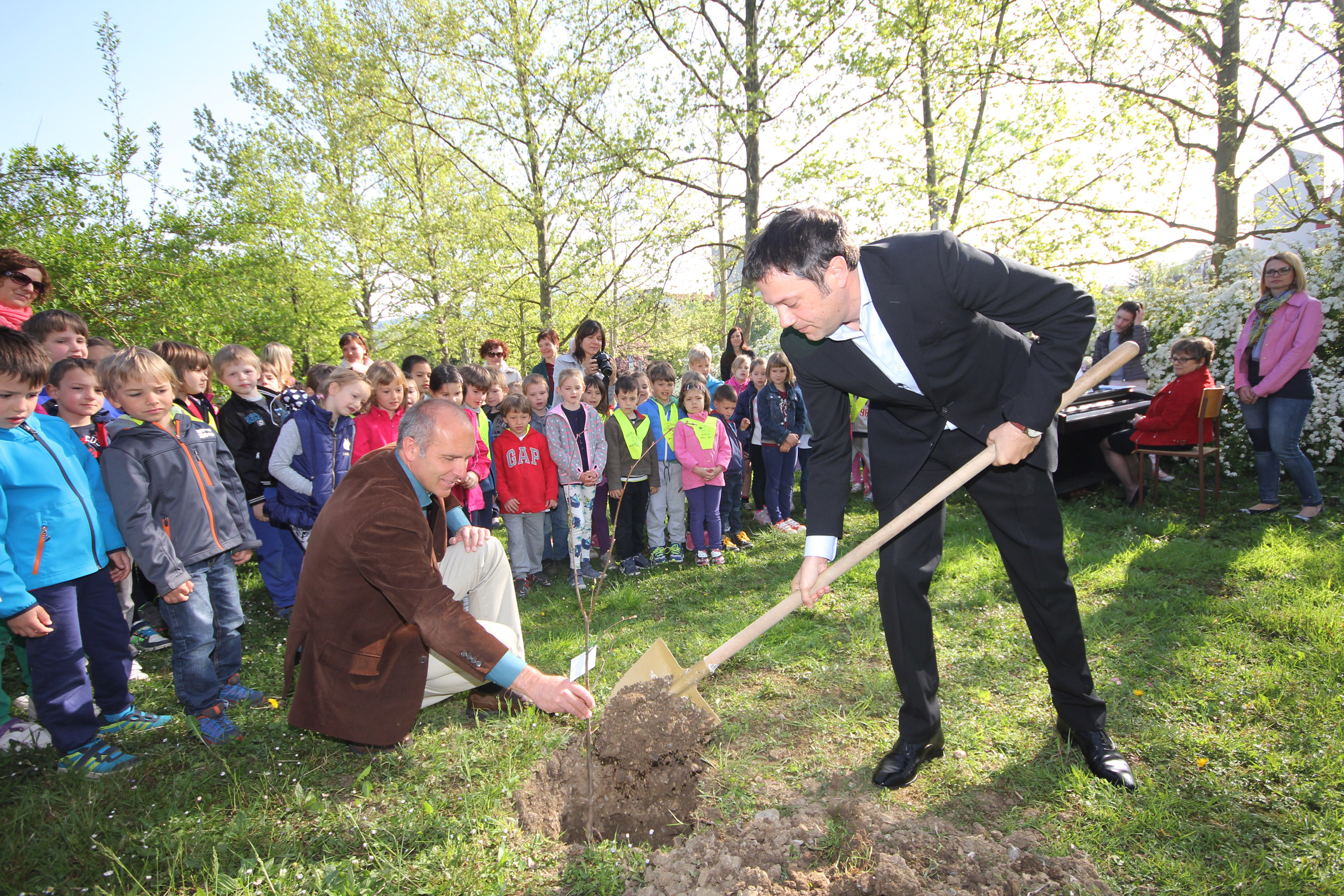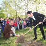 Župan MO Nova Gorica Matej Arčon ob zasaditvi lipe pred Osnovno šolo Frana Erjavca