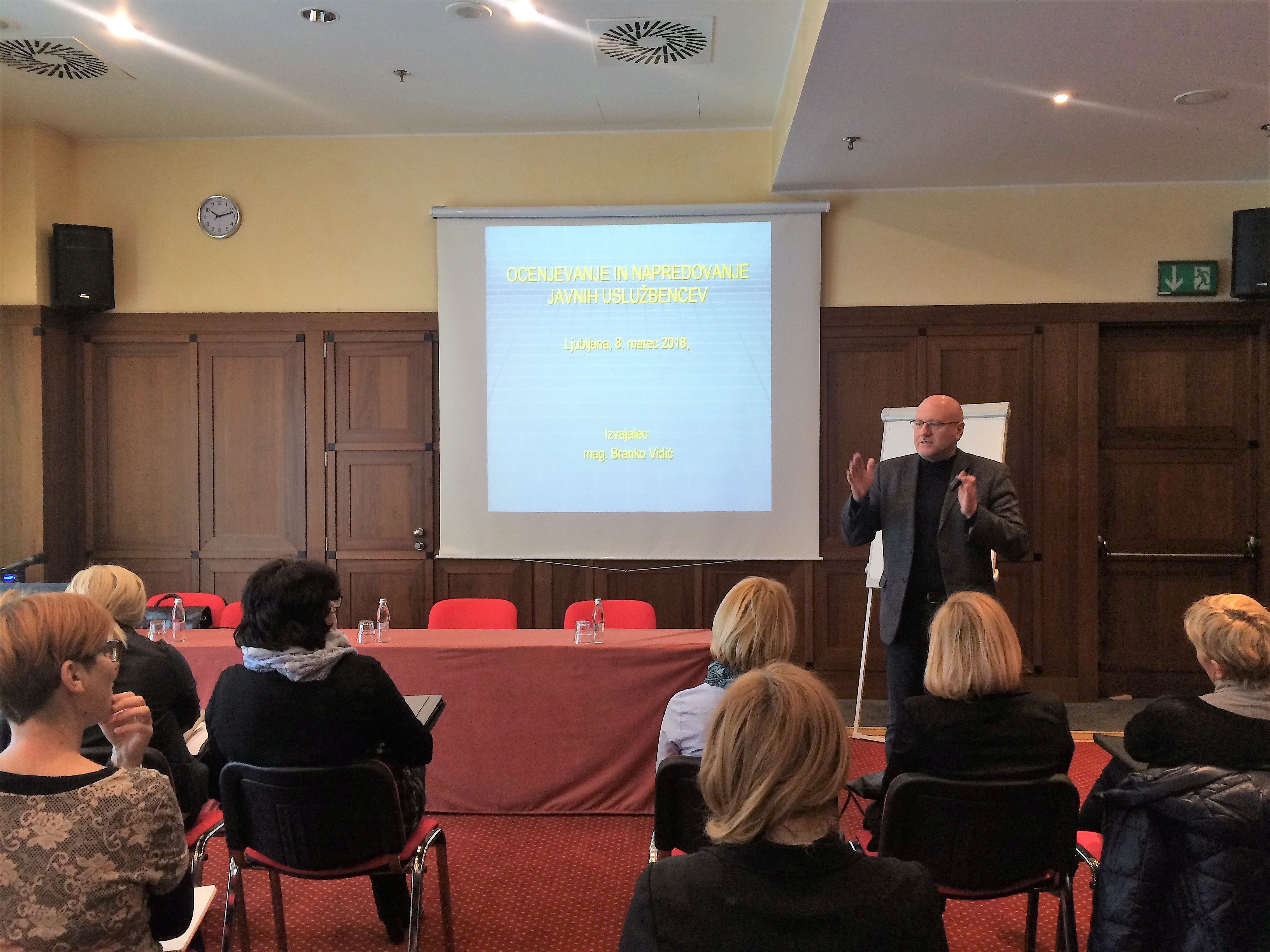 Skupnost občin Slovenije je v sodelovanju z Ministrstvom za javno upravo in predavateljem mag. Brankom Vidičem dne, 8.3.2018, organizirala seminar z naslovom »Ocenjevanje in napredovanje javnih uslužbencev v letu 2018«.