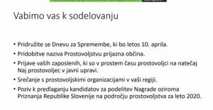 Ob zaključku posveta je Slovenska filantropija občine pozvala k sodelovanju, in sicer ob Dnevu za spremembe, ki bo 10. aprila, k prijavi za pridobitev naziva Prostovoljstvu prijazno mesto, k prijavi svojih zaposlenih za pridobitev naziva Naj prostovoljec v javni upravi, k srečanju s prostovoljskimi organizacijami v vaši lokalni skupnosti ali z nominacijo posameznika za nagrado Republike Slovenije na področju prostovoljstva.