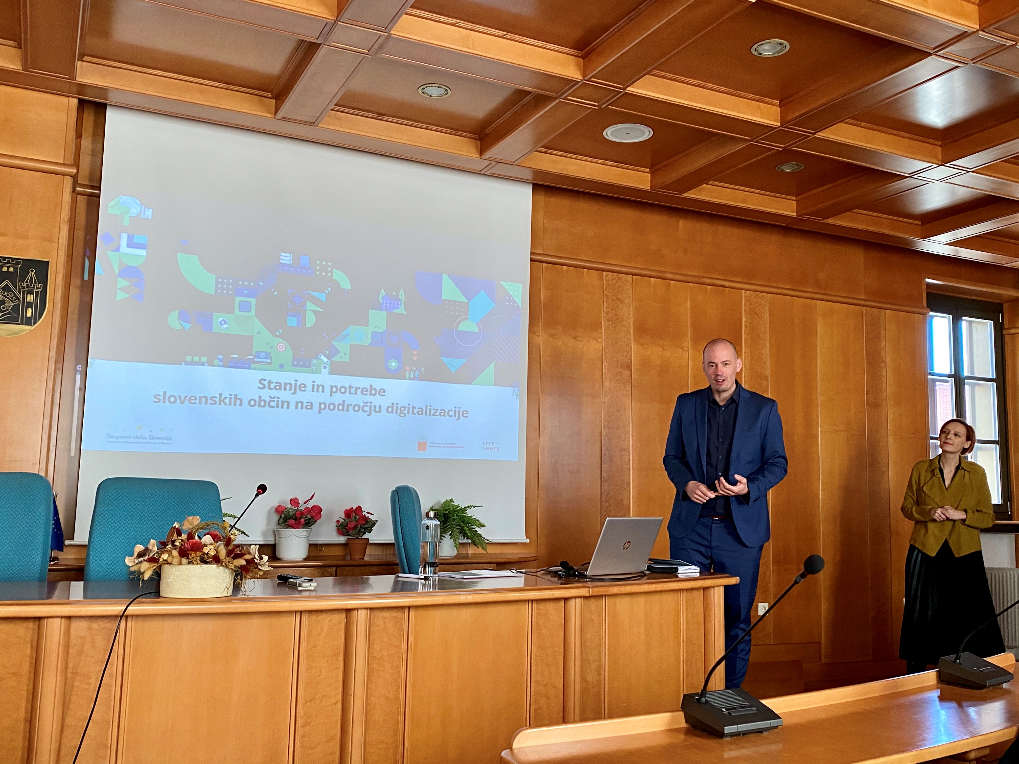 V nadaljevanju sta predstavnika Fakultete za elektrotehniko predstavila pomen digitalizacije in njene prednosti, razpise s področja digitalizacije, ki se jim lahko pridružijo tudi občine (DigiFed, Digital Regions, Carpe Digem) ter dobre prakse v nekaterih državah (Nizozemska, Estonija, Danska, Finska, Madžarska, Latvija,…). Sledilo je delo v skupinah, v katerih so udeleženci iskali rešitve za obstoječe izzive na posameznih področjih (mobilnost, logistika, transport, e- vključenost/participacija, oskrba starejših na domu ter razpršenost podatkov ).